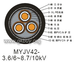 | MYJV42 | 煤礦用銅芯交聯(lián)聚乙烯絕緣粗鋼絲鎧裝聚氯乙烯護(hù)套電力電纜 |