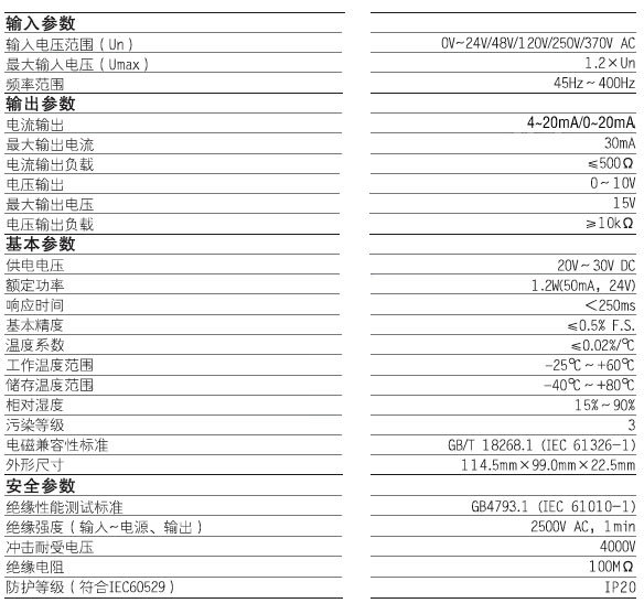 產(chǎn)品名稱 | 型號 | 輸入信號 | 輸出信號 | 供電方式 |