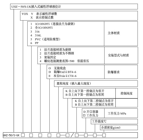 UHZ-50/S-UK系列插入式磁性浮球控制器產(chǎn)品選型表
