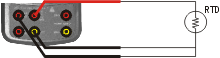 注意:校驗儀可以模擬一個2線的RTD輸出,3線和4線端子僅供測量使用,不可用來模擬輸出。欲連接到一個3線或4線變送器,可使用疊式的電纜線以提供額外接線。
