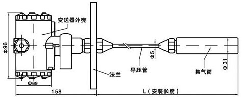 高溫導(dǎo)壓液位變送器(氣體導(dǎo)壓式,用于高溫、腐蝕性液體、污水等)的傳感器部分與信號(hào)處理電路在接線盒內(nèi)部,由投入液體內(nèi)的集氣筒內(nèi)的氣體與介質(zhì)接觸,通過導(dǎo)氣管將壓力傳遞給傳感器,避免了傳感器與被測(cè)介質(zhì)的直接接觸,適應(yīng)于高溫強(qiáng)腐蝕性等場(chǎng)合,有效地解決了高溫腐蝕液體以及污水液位測(cè)量的難題。它特別適合于高溫、腐蝕性液體和污水的測(cè)量。