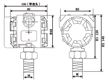 WP401A型數(shù)顯工業(yè)壓力變送器結構尺寸