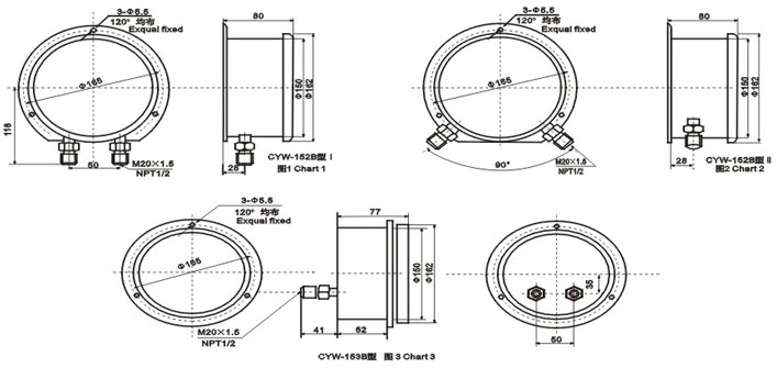3.外型及安裝尺寸:見圖1、圖2、圖3