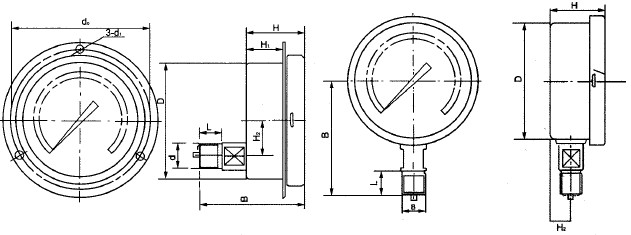 儀表由導(dǎo)壓系統(tǒng)(包括接頭、彈簧管、限流螺釘?shù)?、齒輪傳動機構(gòu)、示數(shù)裝置(指針與度盤)和外殼(包括表殼、表蓋、表玻璃等)所組成。外殼為氣密型結(jié)構(gòu),能有效地保護內(nèi)部機件免受環(huán)境影響和污穢侵入。對于在外殼內(nèi)充液(一般為硅油或甘油)的儀表,能夠抗工作環(huán)境振動較劇和減少介質(zhì)壓力的脈動影響。
