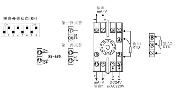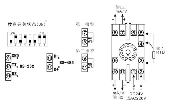 | 08 | Pt100 | -200~650℃ | 16 | 0~20mA | -1999~9999 |