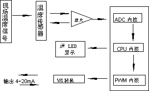 儀表通過溫度傳感器把溫度信號變?yōu)殡娦盘?,再由前置放大器把此電信號放大濾波,送往CPU的A/D