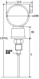現(xiàn)場溫度顯示控制表,帶RS-485通訊,4~20mA輸出,外螺紋G1/2 連接,傳感器長度為100mm,鋁合金外殼無現(xiàn)場指示,測量范圍200~400
