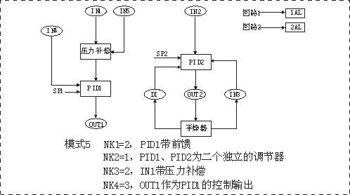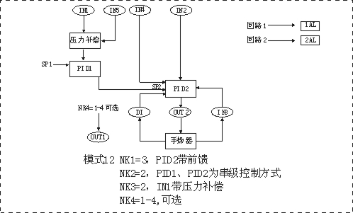 WP-KS805系列雙回路串級(jí)智能PID調(diào)節(jié)控制儀,具有5個(gè)模擬輸入(IN1-IN5)2個(gè)模擬輸出(OUT1、OUT2),一個(gè)開關(guān)量輸入DI,2個(gè)開關(guān)量輸出和豐富的控制算法,適用于鍋爐汽包水位三沖量控制或兩沖量控制并可帶汽包水位壓力補(bǔ)償功能適用于一般工業(yè)過程中溫度、壓力、液位、流量等各種過程參數(shù)的串級(jí)控制,前饋控制、雙路控制等,并可帶后備操作器,與后備控制器配套實(shí)現(xiàn)手動(dòng)/自動(dòng)無擾切換。