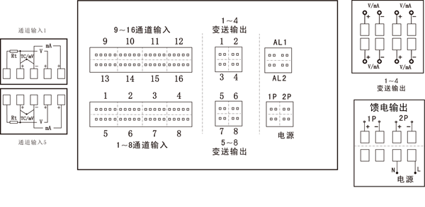 | 1、選型時請根據(jù)接線圖來選擇功能,由于尺寸小的儀表接線端子少帶不了全功能,有的功能在同組端子上只能選擇其中一種功能。 2、選型時如果變送輸出選擇統(tǒng)一變送則報警輸出可選擇統(tǒng)一報警和分別報警,如果變送輸出選擇分別變送則報警輸出只能選擇統(tǒng)一報警。 3、在寫型號時必須完整,沒有選到的功能項不能省略,必須用“X”補上。 例1:NHR-5921A-27-0/1/X-A(統(tǒng)一變送輸出/和統(tǒng)一報警輸出) 例2:NHR-5922A-14-X/1/X-A(統(tǒng)一報警輸出) 例3:NHR-5922A-14-X/2/X-A(分別報警輸出) 例3:NHR-5921A-14-00/X/X-A(分別變送輸出) |