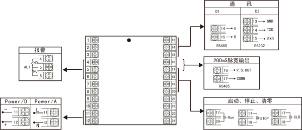 | 1 | 1路報警 | X D1 D2 | 無接口 RS-485通訊接口 RS-232通訊接口 |