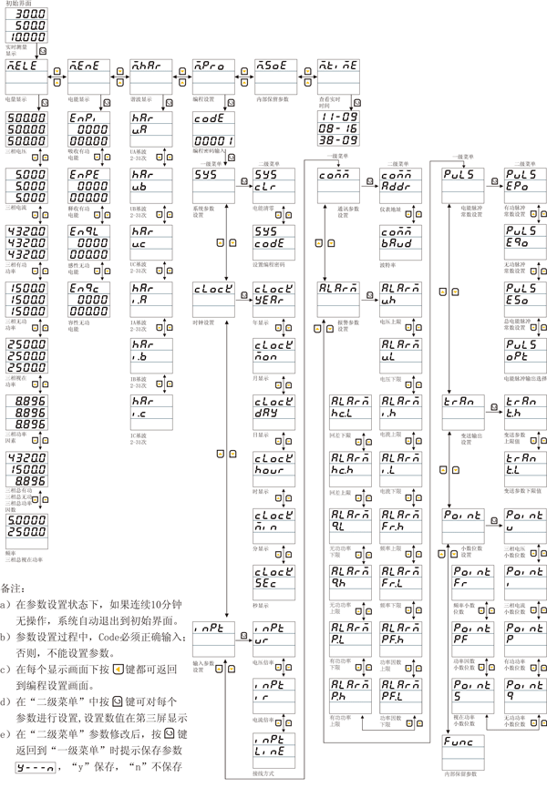 | A C | 160*80*130mm 96*96*130mm | I V W Ep E3P War Eq VA Es COS Hz Har | 三相交流電流 三相交流電壓 三相有功功率 三相有功電能 三相有功平衡功率 三相無功功率 三相無功電能 三相視在功率 三相視在電能 三相功率因數(shù) 三相工頻周波 三相諧波 |