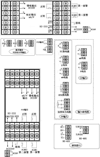 智能自整定PID調(diào)節(jié)器,無通訊,變送輸出和PID控制輸出為4-20mA,輸入信號為4-20mA,儀表帶上、下限報警輸出,帶DC24V饋電輸出,儀表電源為AC220V,儀表外型為80×160mm豎式
