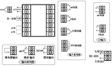 智能自整定PID調(diào)節(jié)器,無通訊,變送輸出和PID控制輸出為4-20mA,輸入信號為4-20mA,儀表帶上、下限報警輸出,帶DC24V饋電輸出,儀表電源為AC220V,儀表外型為160×80mm橫式
