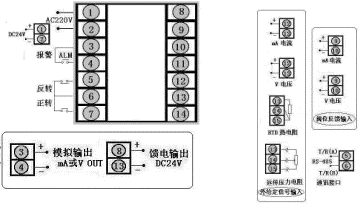 mA,SV輸入類型為4~20 mA,第一報警為下限報警,第二報警為上限報警,DC24V饋電輸出,DC24V供電。
