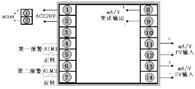 輸出方式為繼電器正反轉(zhuǎn)輸出,PV輸入類(lèi)型為4~20