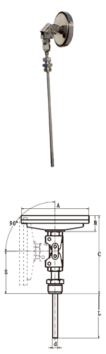 萬向型(可調(diào)角型)雙全屬溫度計,可根據(jù)需要調(diào)整為徑向、軸向或任意角度,便于工程設(shè)計和使用。