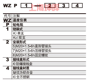 WZ系列可卸式隔爆熱電阻型號表示