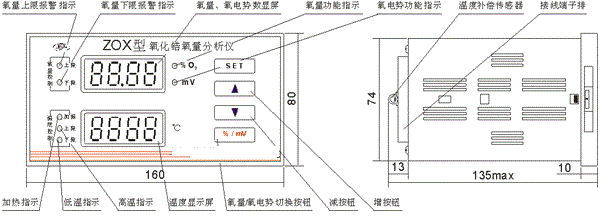 ZO型氧化鋯氧氣含量分析儀盤裝式顯示表外形結(jié)構(gòu)圖