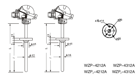 | 雙支鉑熱電阻 | WZP2-120 | 不銹鋼 0Cr18Ni12Mo2Ti | Ф16 | ≤90 | ||