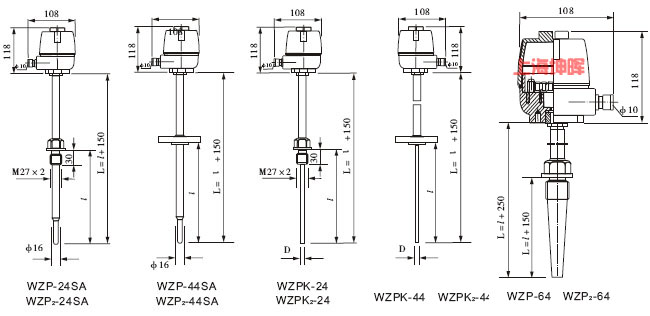 WZP-64S | 1Cr18Ni9Ti | 30 | 錐形保護管 M33*2 | 250 350 450 | 100 200300 | |||||