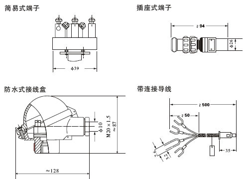 3、按線方式:其結(jié)構(gòu)可分為無接線盒式、簡易式、防濺型接線盒式、防水型接線盒式、隔爆型接線盒式、插座式等。