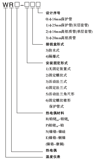 WR裝配式熱電偶基本型號