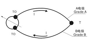 鎧裝熱電偶的工作原理與一般工業(yè)熱電偶一樣,基于Seeback(塞貝克)效應,即:如果由兩種不同成分的均質(zhì)導體(熱電極)組成閉合回路,當兩端存在溫度梯度時,回路中就有電流通過,那未兩端之間就存在Seeback電勢-熱電勢(如下圖所示)