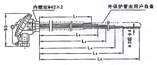 其接線端共同存在于同一接線盒內(nèi),產(chǎn)品無(wú)外護(hù)管。多點(diǎn)熱電偶結(jié)構(gòu)形式與重慶川儀十七廠生產(chǎn)的