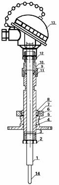 1.熱電偶保護(hù)管2.夾緊套(外購(gòu))3.主管4.快速法蘭5. O形圈(硅橡膠)